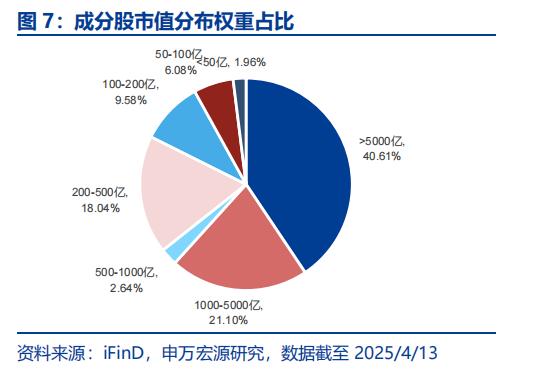 据申万宏源报道,CSI现金流指数的权重向市值较大、自由度较高的现金流公司倾斜,超过60%的权重集中在市值超过1000亿元的公司。市值不足100亿元的公司权重仅占8.04%,市值较大的股份比CSI自由现金流指数更重。