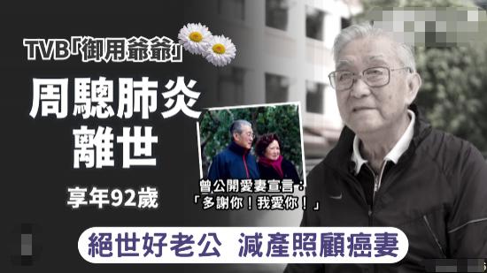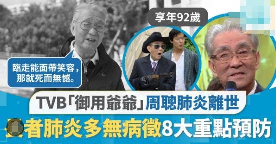 昨天听到一个坏消息,TVB 老戏骨周聪死于肺炎,享年 92 岁。