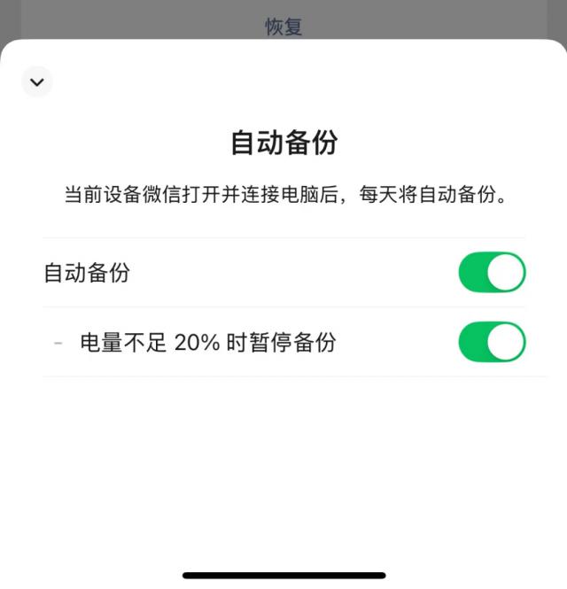 昨天的最新版本中,微信似乎上线了。 一键备份 "功能。