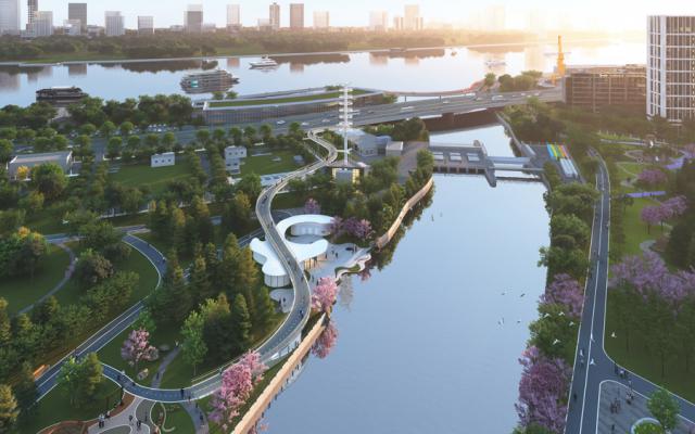 建成后,整个水环将与黄浦江滨江步道形成“滨水” 滨江“空间闭环,构建“一环四带八景”的景观结构。核心景点包括莲溪公园、古韵新章、锦绣未来、川杨杉影、御桥云湾、阳光三林、林浦莺飞、绿茵逐浪。