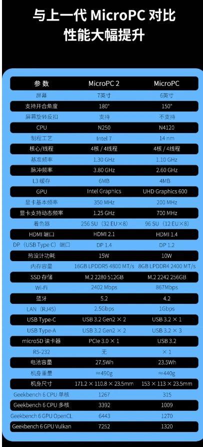 GPD 这次没 " 挤牙膏 ",毕竟 6 2000年,直接给 MicroPC 2 来了波 " 大换血 "。