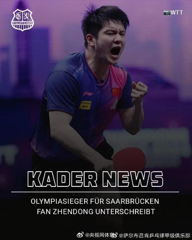 樊振东在俱乐部的官方声明中说:我真的很期待在萨尔布吕肯和德甲之间的新挑战,感受新的环境——并且和球队一起赢得更多的胜利。