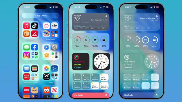 色调(Tinted)比较模式中的比较 iOS 18,iOS 26 具有很强的“液态玻璃”效果。