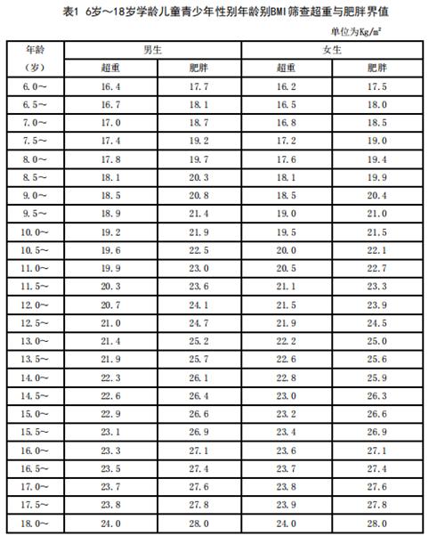 计算BMI:BMI=体重(Kg)/身高(m)⊃2;,对比《6岁~18岁学龄儿童青少年性别年龄BMI筛查超重与肥胖界值,判断体重是否在正常范围内。