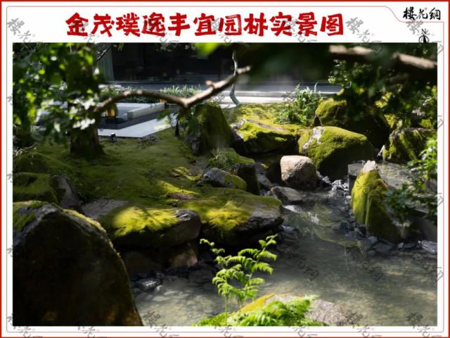 再次看看璞逸丰宜下沉庭院中的“原始森林”,里面的苔藓,黑皮山石,全部来自江西宜春的原始林地,原封不动。黄色和绿色的颜色,100% 重现了大自然应有的样子。