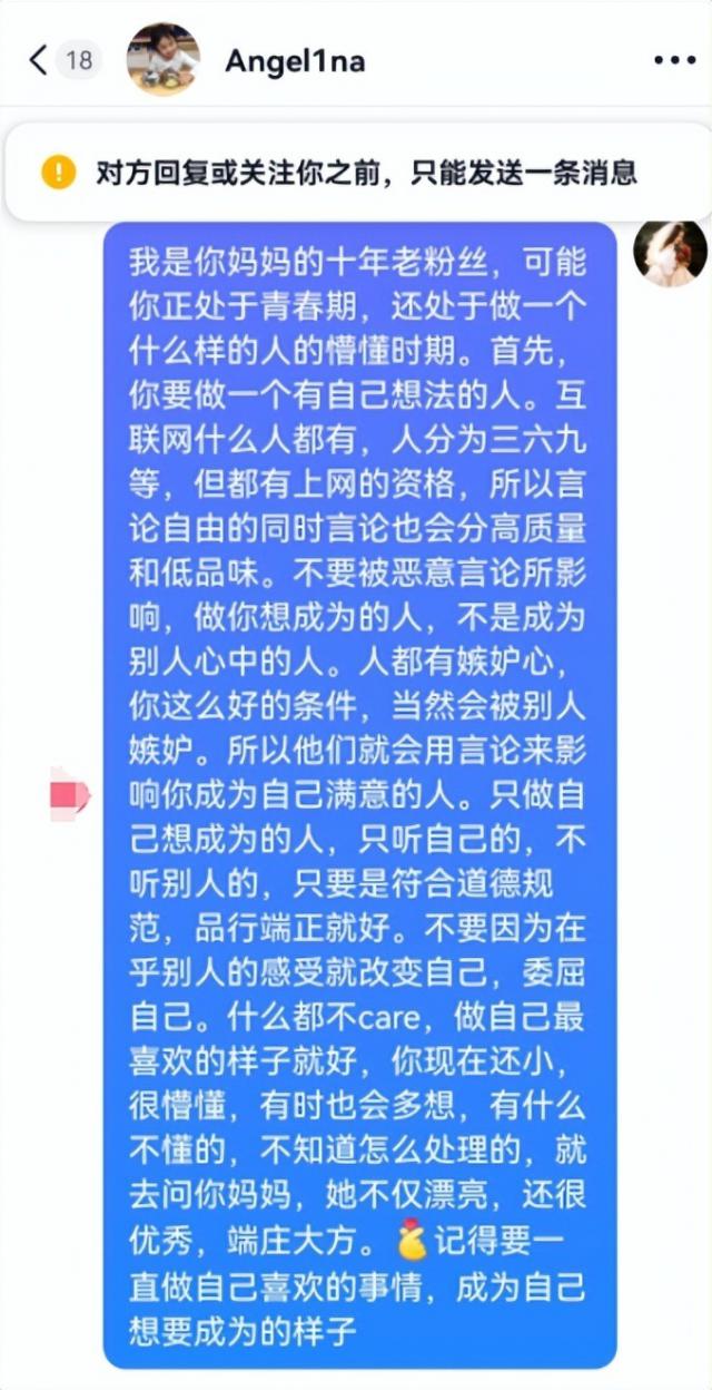 如果别人发出这样悲伤的文案,网友可能不会在意,但如果是甜心,很多网友认为她可能真的很痛苦。毕竟,作为一个有争议的明星家庭的女儿,她从小就遭受了很多网络暴力。她穿的是什么样的衣服,甚至在阳光下收到的红包都会有争议。她年纪小,上网多,难免会受到负面言论的影响。