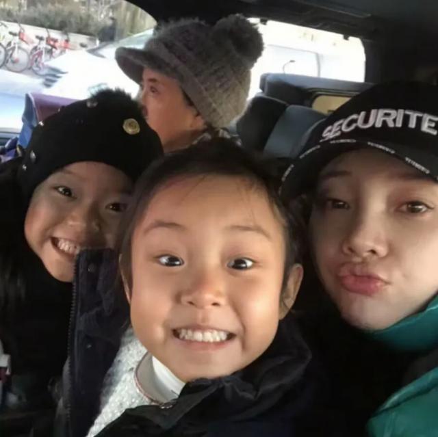 她晒出了两张乖巧的童年照,一张照片是和朋友、家人挤在一辆车里,她的眉眼里充满了喜悦,咧着嘴笑。