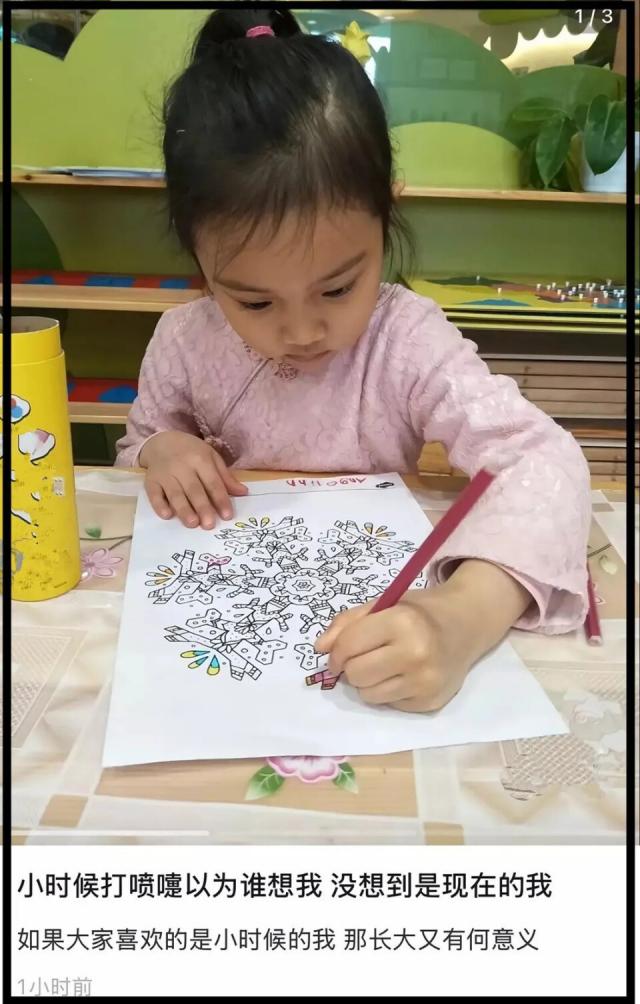 另外一张照片是她低头学画画,一副非常专注的样子,虽然年纪很小,但她画得一点也不差。