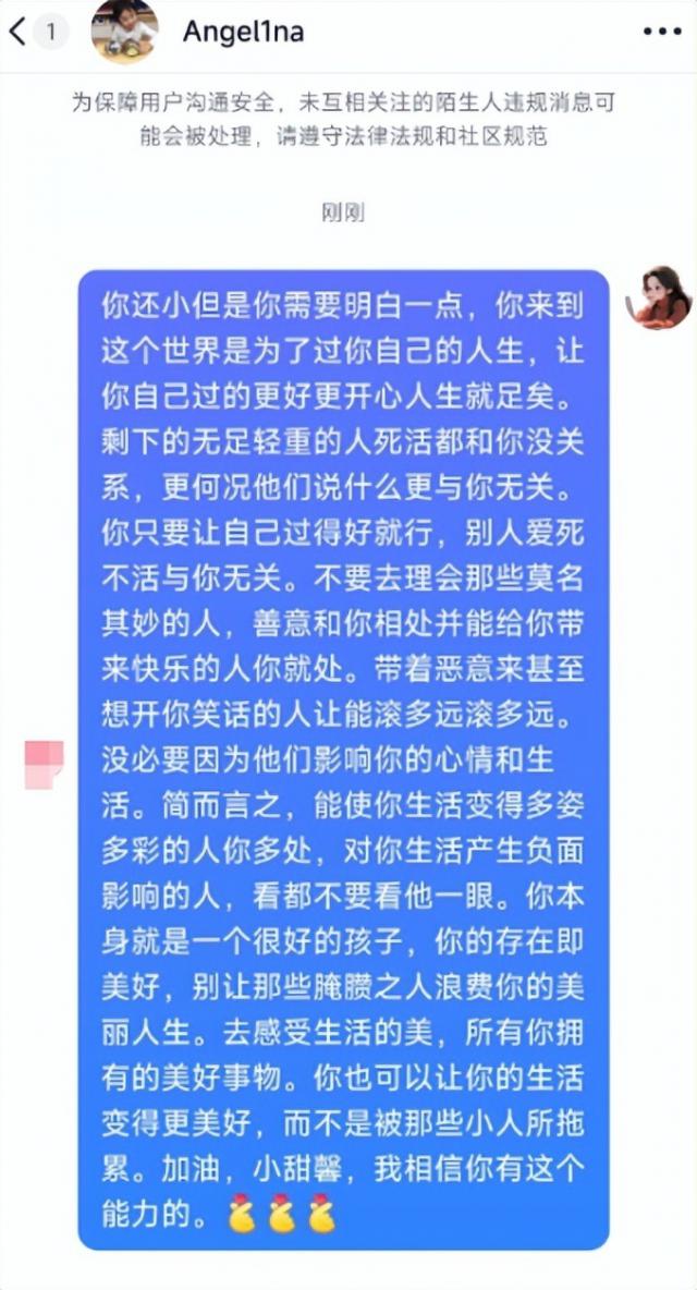 所以很多网友都在评论区用自己的经历来激励甜馨,也有不少网友纷纷给她发私聊,试图引导她走出这种悲伤的状态。