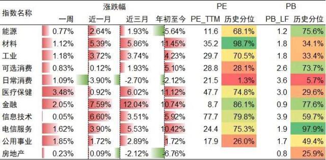 行业板块:上周 Wind 一级平均涨幅 1.30%,Wind 百大概念指数上涨比例。 78%。板块方面, 81% 板块获得正收益,钢材、建材、银行业绩相对较好,各自上涨。 5.06%、3.96%、3.77%,综合、媒体、农林牧渔等均出现。 2% 上述涨幅,只有美容保养、非银行金融、计算机走弱,各自下跌。 0.55%、0.72%、1.28%。