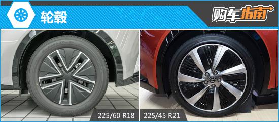 丰田就轮毂而言 bZ5 选择入门级车型 18 英尺灰 / 白色轮毂,与之匹配的轮胎规格是 225/60 R18;其它车型均采用 21 英尺黑 / 银色轮毂,与之匹配的轮胎规格是 225/45 R21。