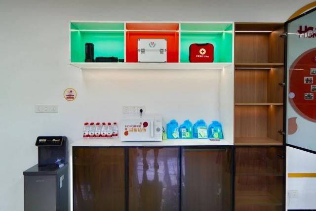 " HONG 位于江桥镇星华公路的新聚力站 567 号码新华村村委会北 30 大米,占地面积约 40 平方米。服务点设施齐全,配备空调、饮水机、桌椅、充电插座、书柜等。,为户外工作者提供舒适的休息环境。同时,栈还精心准备了藿香正气水、驱蚊水、清凉油等防暑产品,以应对高温天气。