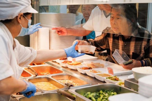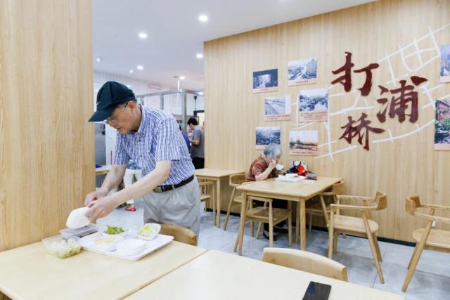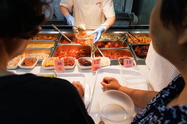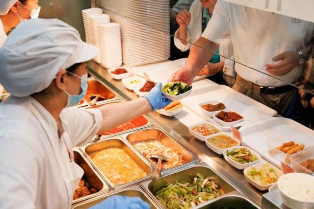 餐馆里摆放着 40 在多个用餐位置,居民可以选择正餐,也可以自带饭盒把食物打包带走