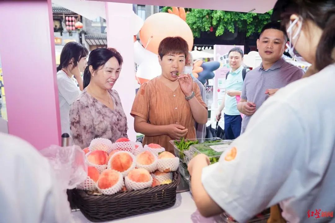 7月5日上午,“福市集”品牌闪光活动在成都宽窄巷东广场举行,旨在深化粤港澳大湾区与成渝双城经济圈产业合作,畅通两地农产品流通渠道。据活动方介绍,100吨以上的桃子将物流到粤港澳,不超过48小时。