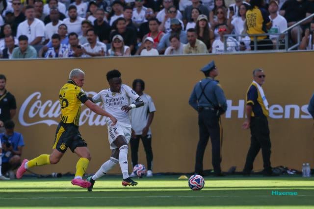 北京时间 7 月 6 日,世俱杯 1/4 决赛继续进行,皇马在大都会人寿球场迎战多特蒙德。上半场,贡萨洛洛 · 加西亚和弗兰 · 加西亚各进一球,下半场易边再战,拜尔扳回一球,姆巴佩腾空侧钩破门,吉拉西点击成功。最后整场比赛结束,皇马 3-2 击败多特蒙德,晋升 4 强。