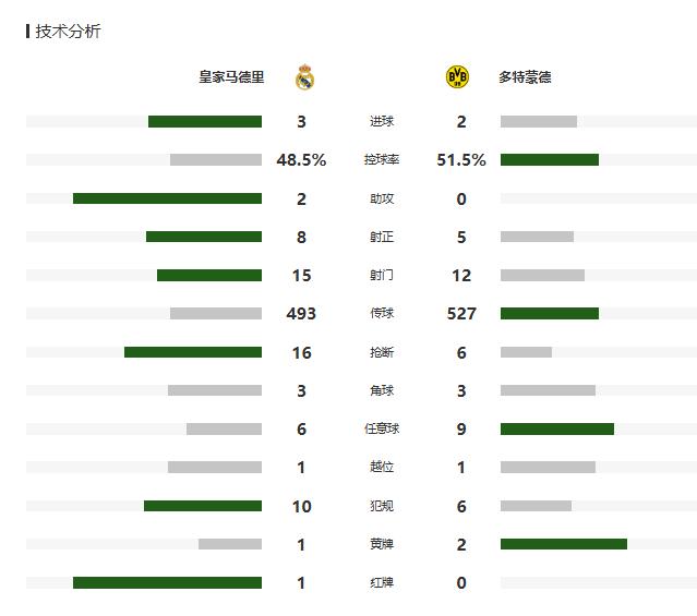 4、皇马第 9 每次击败多特蒙德,总战绩 9 胜 5 平 3 负。
