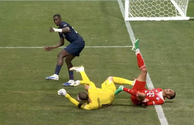 第 45 3 几分钟后,球场上发生了一起事故:在巴黎雷区,中卫帕乔用身体保护球,抵抗穆西亚拉的抢劫。多纳鲁马进攻,准确扑球。然而,当多纳鲁马进攻和扑球时,穆西亚拉摔倒了。22 穆西亚拉,左腿脚踝严重变形,呈现出严重的变形。 90 度过,痛苦倒下!