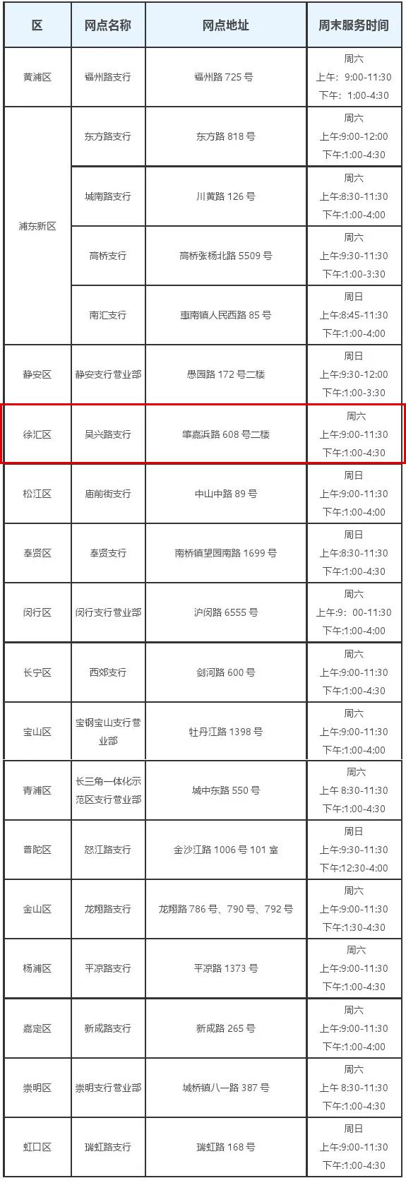你还在担心工作日没时间办理公积金业务吗?好消息来了!上海公积金中心与建行上海分行携手,将建行上海分行周末办理公积金业务网点。 3 家扩容至 19 家庭,全市所有行政区域均已纳入业务范围。 19 一个周末服务点具体在哪里?大家一起来看看吧!