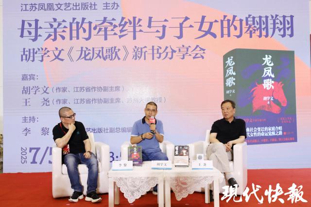 7 月 5 日本,江苏省作协副主席、作家胡学文的小说《龙凤歌》新书分享会在江苏书展上举行。苏州大学讲座教授、作家王尧、江苏凤凰文艺出版社副总编李黎在本次以“妈妈的羁绊和孩子的飞翔”为主题的文艺活动中,与胡学文一起,深入探讨了当代家庭和个人的成长。凤凰传媒副总经理袁楠出席了活动。在多个平台上,交流会同步直播,引发了线上和线下读者对“亲子关系”问题的热烈讨论。