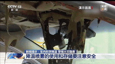 很多车主喜欢用冷却喷雾,但在使用和储存过程中要注意安全隐患。在实验中,消防队员找到了两辆报废的汽车,并在密闭的汽车中喷洒了大量的冷却喷雾。消防队员做好安全防护后,模拟车内有人点火抽烟。明火刚刚靠近车辆,车内瞬间爆炸,车窗玻璃粉碎,车内有不同程度的烧痕。