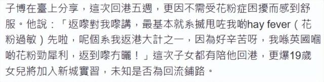 林子博在活动中吐槽,批评英国各方面都做不到。他说他对花粉过敏,在英国很努力。当他回到香港时,他消失了。然后他爆料一对孩子回来了,19 年迈的女儿加入了香港新城电视台。