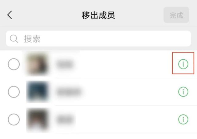 现在微信在移除群成员的页面中,在群成员右侧加入了一个页面。「i」图标。