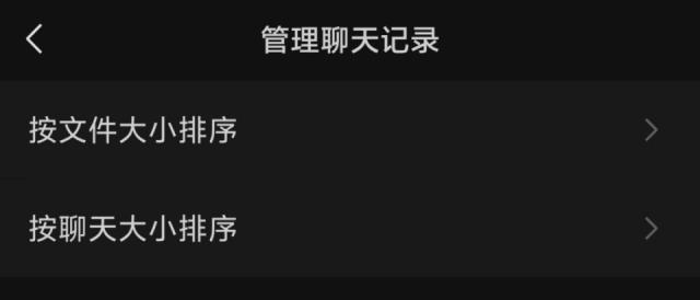 接着就可以选择了「按照文件大小排序」或「根据聊天大小进行排序」。