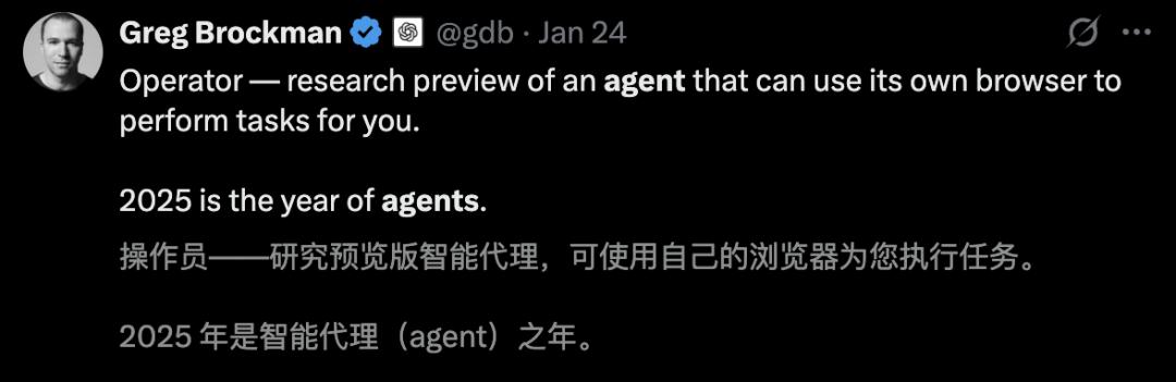 OpenAI总裁Greg Brockman多次公开称,「2025年,是AI智能体的元年」。