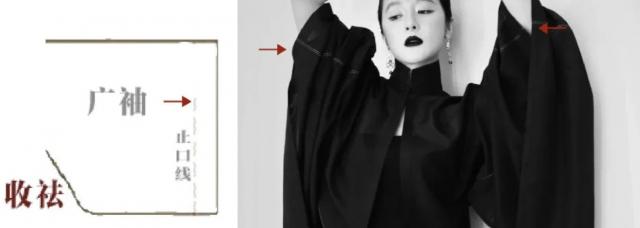 另一种是收祛的,就算是宽袖的衣服,袖子里面也会缝一道暗线,一方面是为了防止滑袖,另一方面可能是为了方便装些轻便的东西。徐娇这件衣服就采用了收祛设计,既保留了大袖的礼服感,又不会因为袖口太大而跑袖。