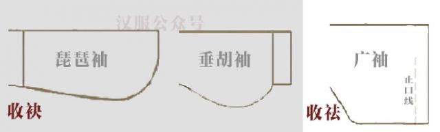 袖子的收口也是传统设计,古人袖子的设计其实是有“技巧”的。收口的袖子大致有两个特点,一种是本身是收袂的,像明代流行的琵琶袖、汉代流行的垂胡袖等样式,袖子形状自然形成一个兜袋的效果;