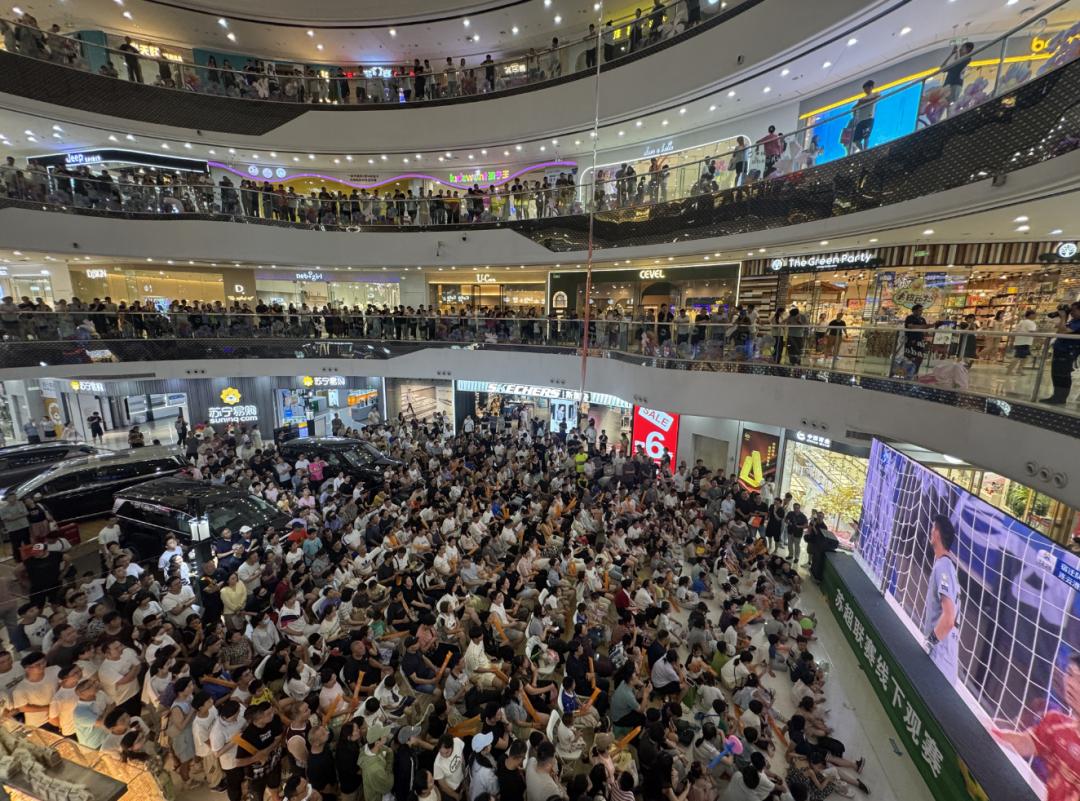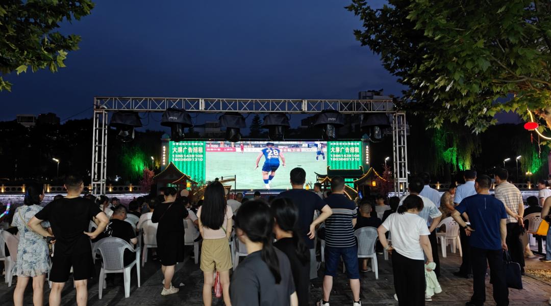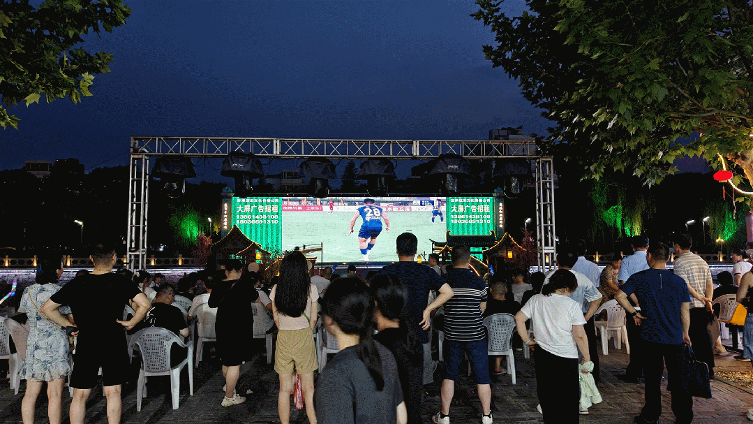 不光是球场现场,在第二现场,港城的球迷们同样热情高涨。商超综合体、特色街区、各景区、各场馆、小区广场等地方的直播大屏,吸引了大批球迷,欢呼声、呐喊声点燃了大家的足球热情。
