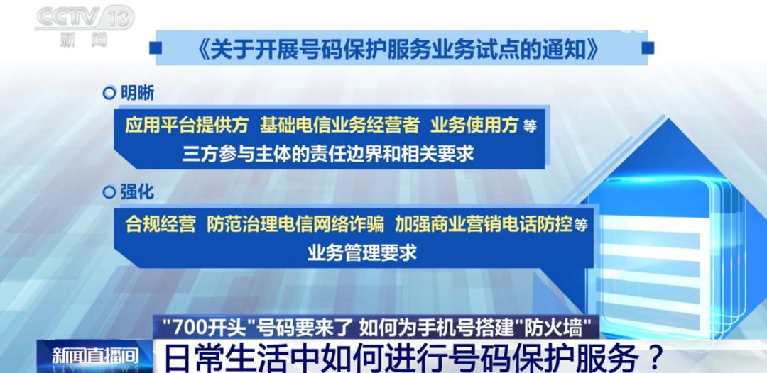 近日,工业和信息化部发布了《关于开展号码保护服务业务试点的通知》,将700号段规划为号码保护服务业务的专用码号资源,旨在进一步加强个人信息保护,规范中间号业务,强化码号资源管理,防范治理电信网络诈骗和非应邀商业营销信息。
