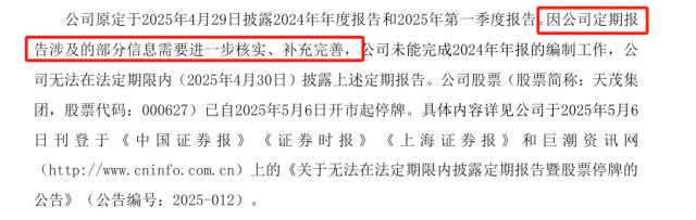 实际上,此前那些因无法披露年报而被立案调查的上市公司,大多已完成年报披露,即便给出的是无法表示意见,好歹也算发了出来,可天茂集团的年报却一直难产。