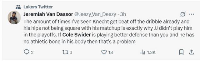 还有湖人球迷开玩笑:克内克特现在回学校读一个硕士还来得及。