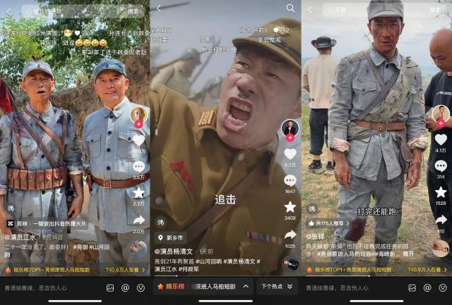 演员杨清文、江水还发布《亮剑》时隔21年再次重聚的视频,部分视频点赞甚至超60万。