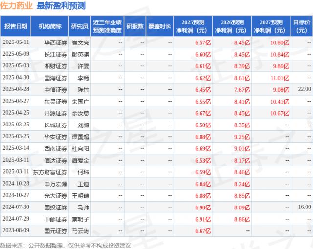 佐力药业2025年一季报显示,公司主营收入8.24亿元,同比上升22.52%;归母净利润1.81亿元,同比上升27.2%;扣非净利润1.81亿元,同比上升26.16%;负债率30.38%,投资收益 -29.3万元,财务费用133.06万元,毛利率60.9%。