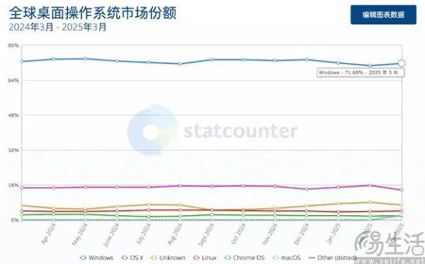 2022年微软财报曾提及,Windows当时在全球超过14亿台设备上使用。这意味着从2022年到2025年年中,全球活跃的Windows设备数量似乎被锁定在了14亿台,这一情况颇为蹊跷。难道大量用户真的转向了Mac、Linux或者ChromeOS?