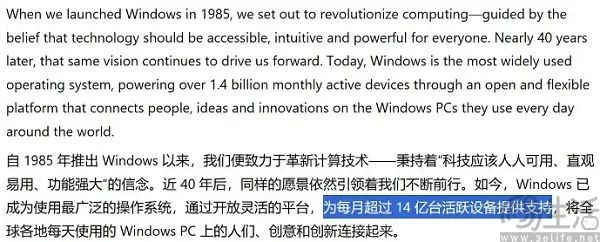 随着此事热度不断攀升,微软迅速出面“灭火”。他们悄悄修改了博客文章中的表述,把“Windows正在全球超过10亿台活跃设备上运行”中的“超过10亿”改成了“超过14亿”,并在末尾编者注中承认了这一修改。然而,这一修正又引发了新的讨论,因为这相当于微软从侧面承认Windows活跃用户已停止增长。
