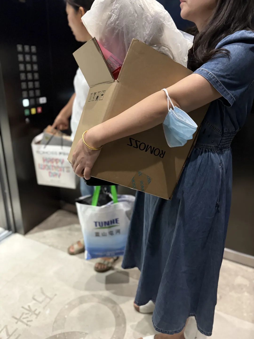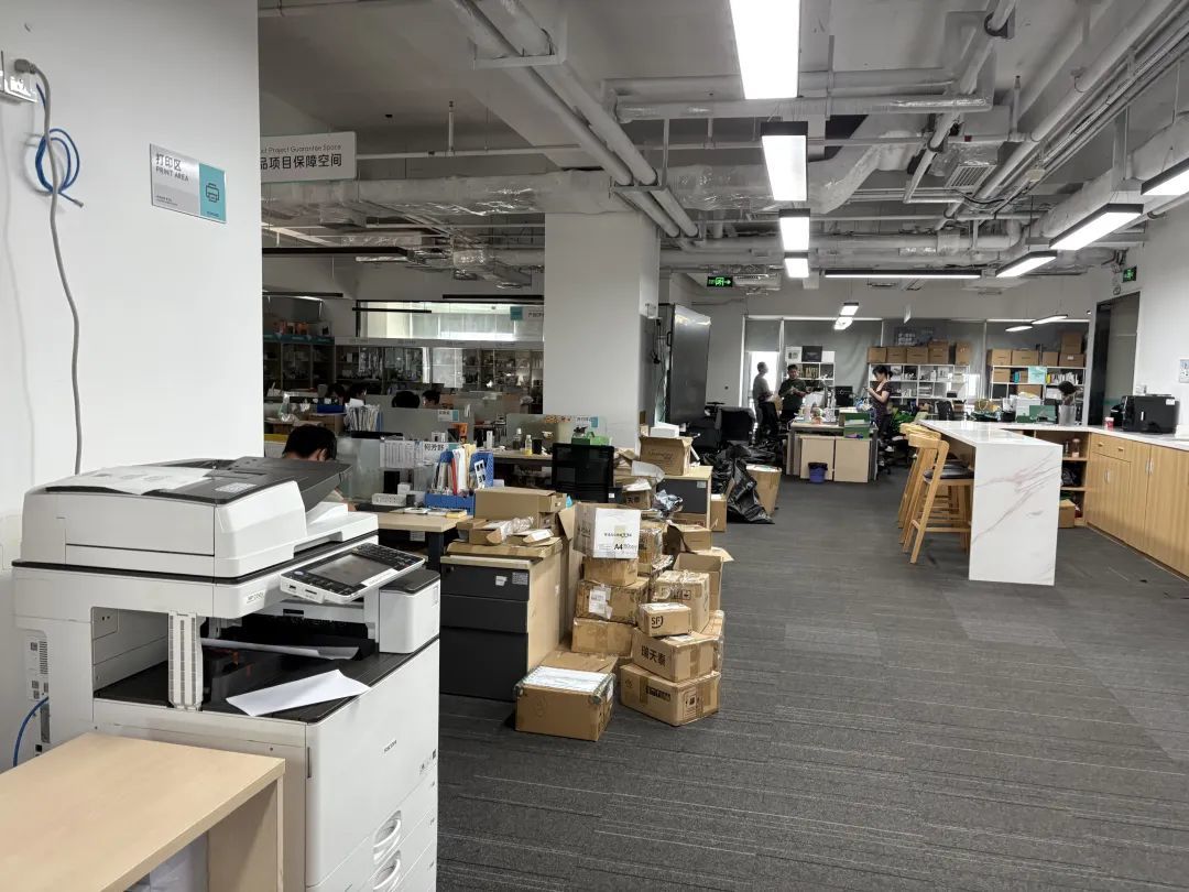 在办公区和电梯里,随处可见员工打包物品或提着“行李”离开的场景。