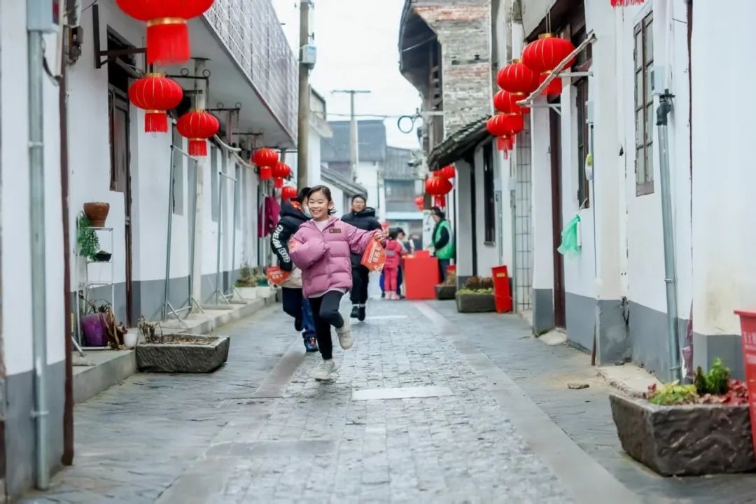 老街的青石板上,孩童欢脱的身影跃动着,稚嫩的笑声叩醒垂花门下的点点春光。氤氲年味里,盏盏红灯垂落在檐角,守护着“一街九巷”的古老肌理。
