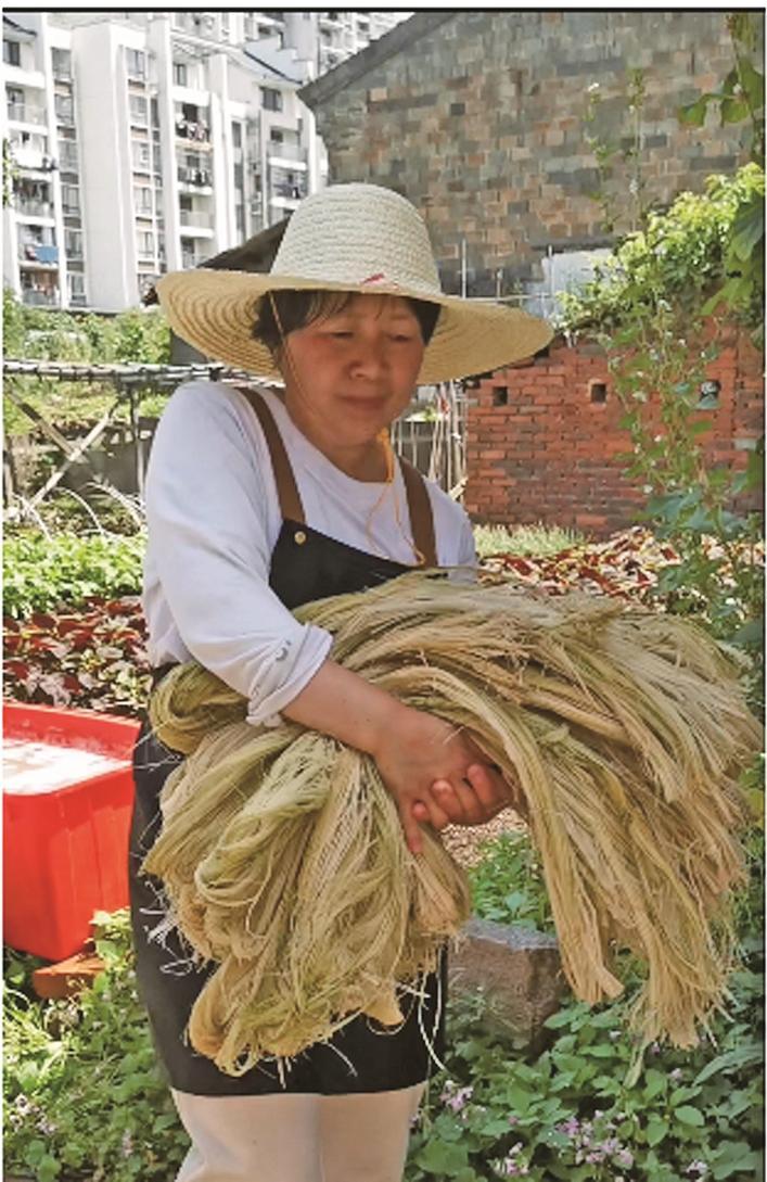 浸泡好的竹丝要经晾晒,才能用于编织。