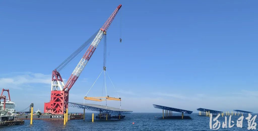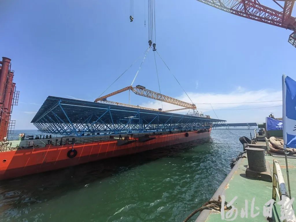 近日,秦皇岛市昌黎县海域,随着一块海上光伏板与网架平台焊接完成,我省首个海上光伏项目——秦皇岛市1800兆瓦海上光伏示范试点项目迈入大规模施工阶段。