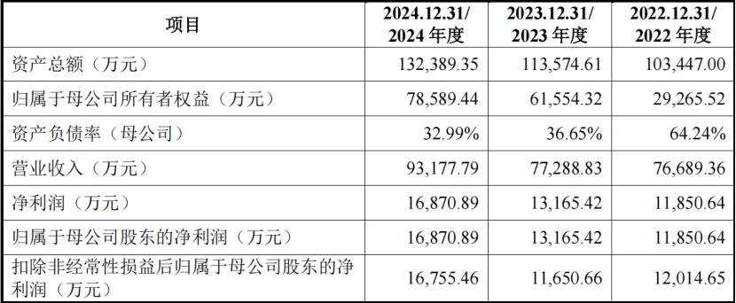 业绩方面,报告期内,冈田智能的营业收入分别约7.67亿元、7.73亿元、9.32亿元,2024年的增长主要得益于工业母机政策驱动;毛利率分别为30.72%、31.41%、32.70%;归母利润为1.19亿元、1.32亿元、1.69亿元。