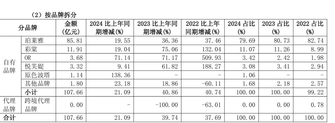 从国内市场洗护品牌表现看,橘宜集团拓展的洗护发业务在2024下半年增幅为72%,2024年高端洗护发品牌馥绿德雅实现高双位数增长;珀莱雅旗下洗护品牌Off&Relax(OR)2024年营收为3.68亿元,同比增长71.14%,增速在自有品牌中排第二。