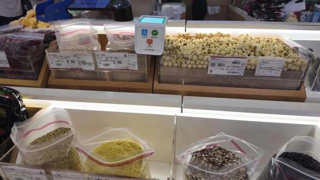 7月8日上午,记者走访南京路的食品一店,发现店内热闹非凡,很多市民来选购杂粮。货架上,红豆、绿豆、莲子、薏仁、百合等品种繁多,吸引着大家的目光。其中,绿豆是五谷杂粮中的“消暑明星”,富含蛋白质、维生素和矿物质等营养成分,有清热解毒、消暑利水的功效,是小暑时节做粥的好食材。不少市民在货架前精心挑选,一买就是五六种杂粮,他们说回去可以自由搭配,按自己喜好打造养生粥。