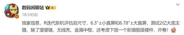 同时,该博主还曝光了一款“R迭代新机”的部分信息。