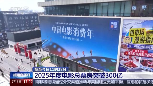 据网络平台数据,截至7月8日11时38分,2025年度电影票房(含预售)突破300亿,比去年提前了28天。