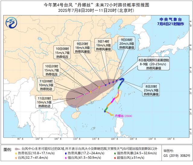据中央气象台最新预报,今年第4号台风“丹娜丝”已于今天(7月8日)21时25分前后在浙江省温州市洞头区沿海登陆。