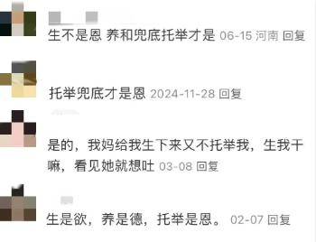回到开头的问题:生养都不是恩,只有托举和兜底才是恩?我觉得问题出在“恩”字上。“恩”意味着不平等,是一种自上而下的施舍,还期待回报。父母和孩子之间,该讲的是爱。父母功利,孩子自然也会功利;相反,父母无条件、自然而然、不图回报的爱,才是给孩子最大的财富。