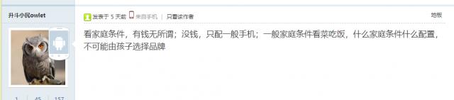 这则帖子引发了激烈讨论,大部分人站在父母的角度,认为没必要花那么多钱,一般家庭买一般的手机就行。